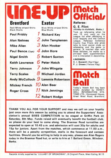 With huge thanks to Jonathan Burchill, old school friend, lifelong Brentford fan and author of A Pub on Each Corner, who supplied me with the programme pictures in this piece, and whose book I used for the details of my first game. And thanks to David for taking me!